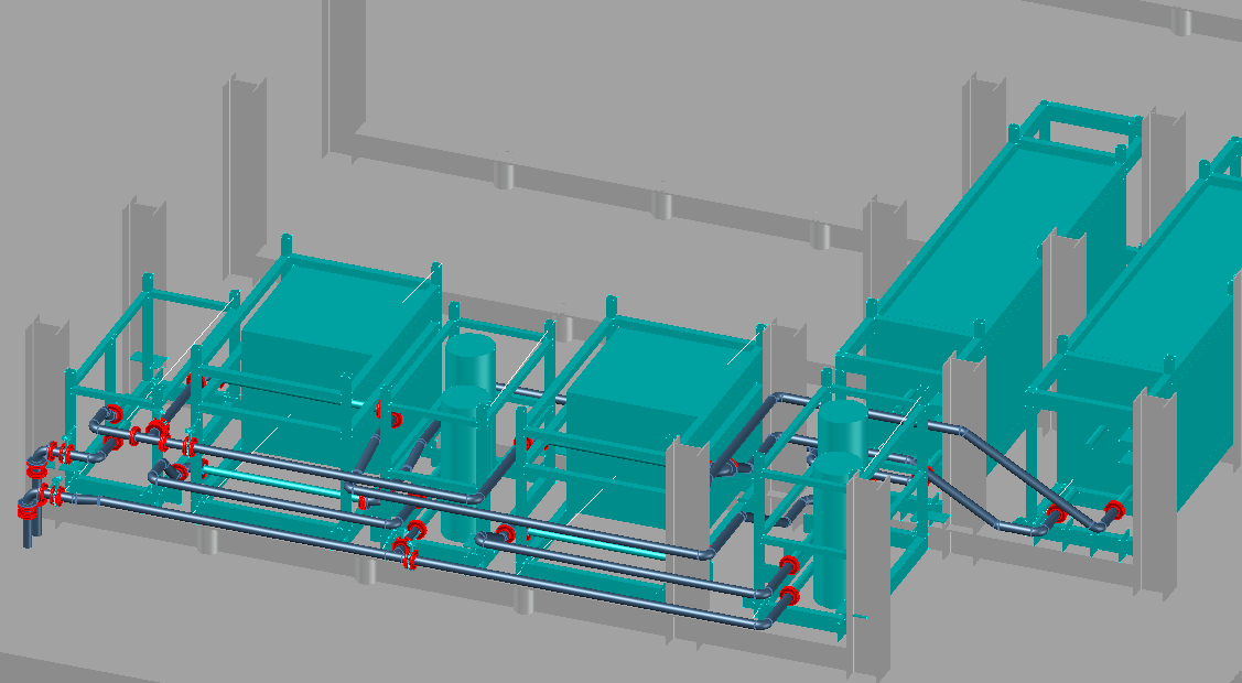For the Brine Filtration system we designed the foundations for the equipment, pipeline design, predicted necessary modifications to the existing structure. Made a FEM foundation analysis, sea fastening study. We made complete project documentation for the register and workshop documentation for the construction of the foundations and pipelines.