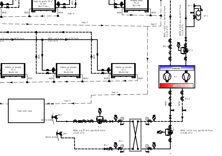 We produce all required documents for the chill water system, all approved by the register. We also deliver and install all piping and equipment.